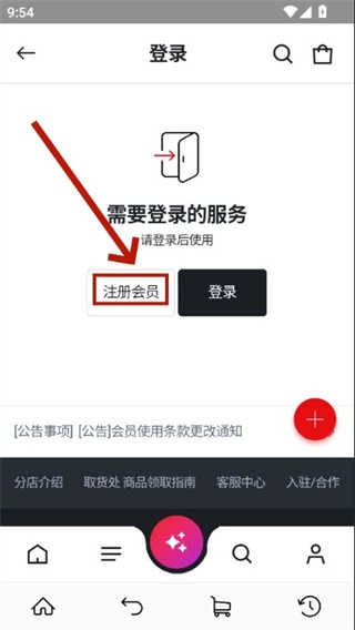 2、进入个人账户页面后,点击注册会员或登录按钮;首次使用的用户需先完成账号注册。