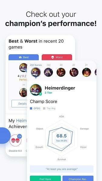 OPGG是一款十分实用的数据统计与分析工具。该软件不仅可以清晰展示用户近期的游戏表现,还会每日更新大量英雄联盟的新闻及赛事资讯,为用户提供全方位的一站式服务。