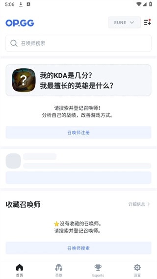 3、在首页,用户可通过右上角的地区选择功能选定地区后,输入召唤师名字,即可开始搜索该召唤师的评分、排名以及战绩等信息。