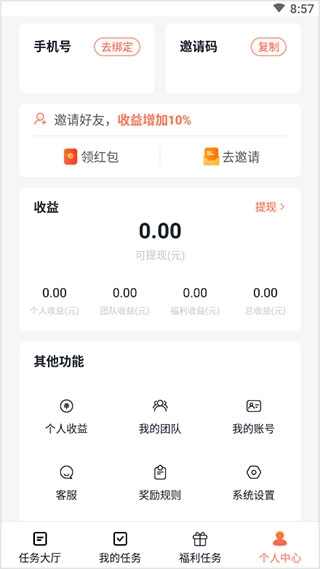 4、进入个人中心,你可以查看自己的账户余额,了解拉新赚钱的具体方式等内容。