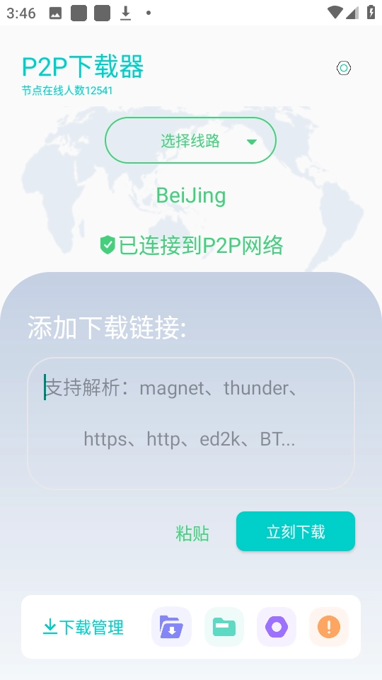 3、支持解析的链接类型包括:magnet、thunder、https、http、ed2k、BT。