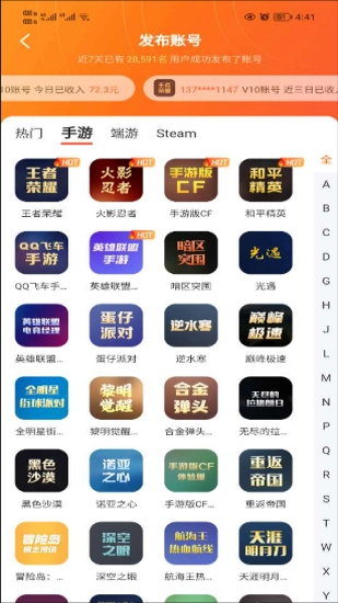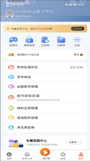 u号租平台是一款自由账号交易类的应用,在这里有很多游戏账号可以进行交易,所有游戏都经过了严格审核,整个交易过程也十分安全。为了防止账户被找回,平台还提供24小时在线客服,随时帮助用户处理各种问题,快来体验吧。