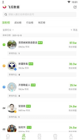 飞瓜数据提供短视频平台数据变化的实时监控功能,用户能够随时掌握相关数据与趋势动态。