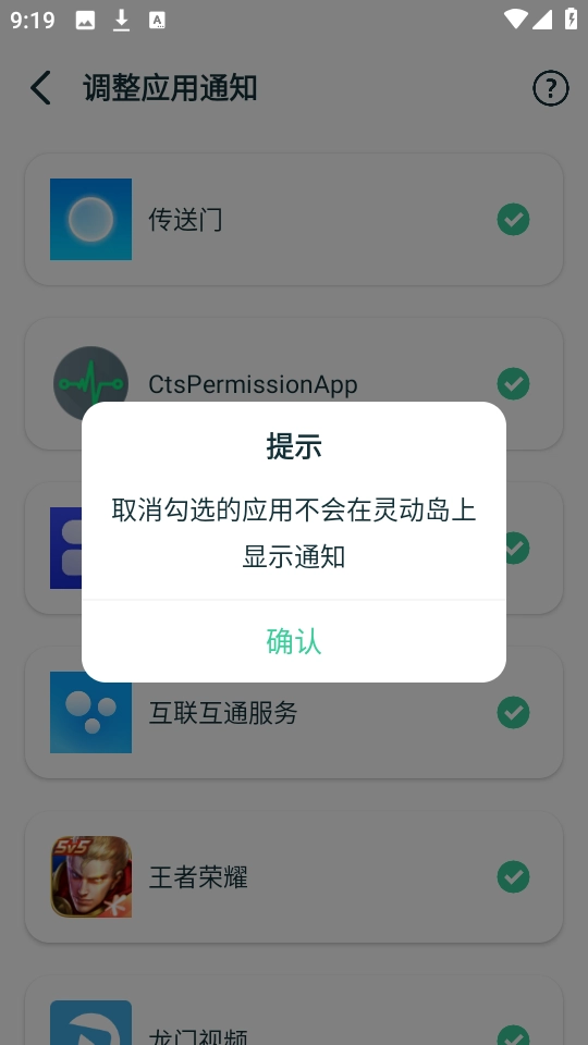 4、点击右上角的图标后,取消勾选的应用将不会在灵动岛上显示通知。