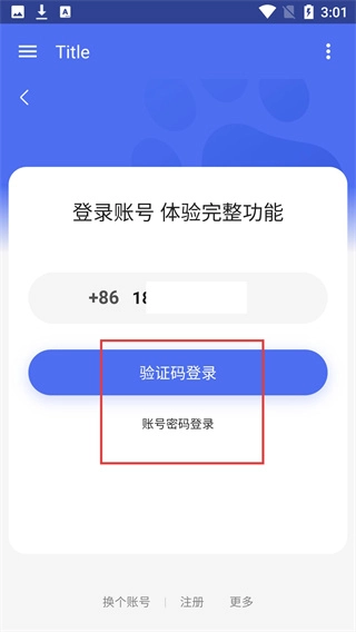在登录方式选择界面,你可以选择【验证码登录】或者【账号密码登录】,完成相应的验证就能登录账号并使用全部功能。
