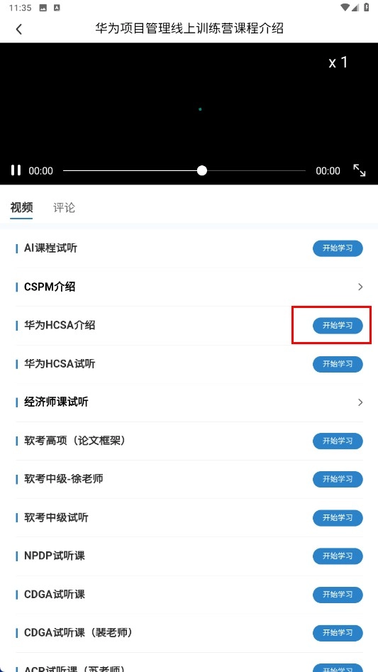 4、进入课程学习页面后,能够观看课程视频,例如华为项目管理线上训练营的课程介绍。