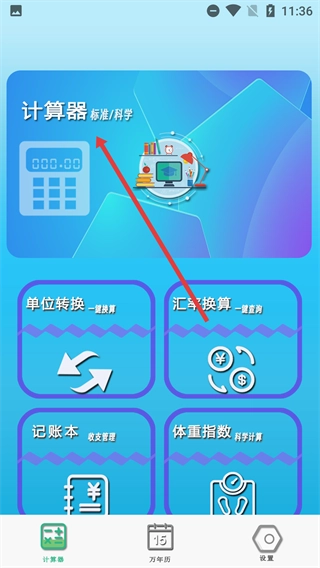 在应用首页点击【计算器】区域,进入计算器功能界面。