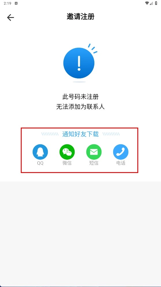 4、若对方尚未注册,可借助QQ、微信、短信、电话等途径通知好友使用该应用。