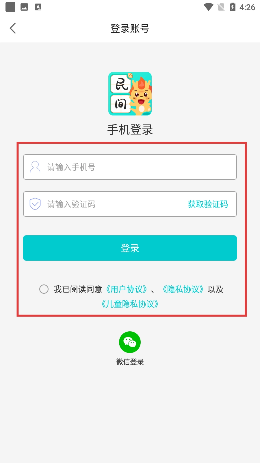 4、进入登录页面后,依次输入账号、验证码,勾选相关协议,最后点击【登录】按钮即可完成登录操作。