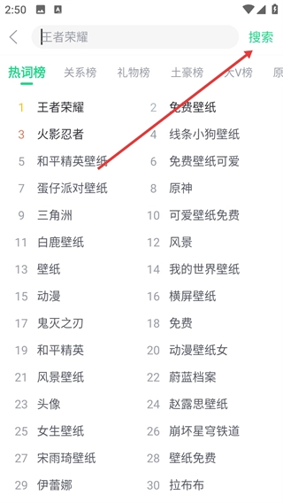 点击搜索框,输入“王者荣耀”,然后点击【搜索】按钮。
