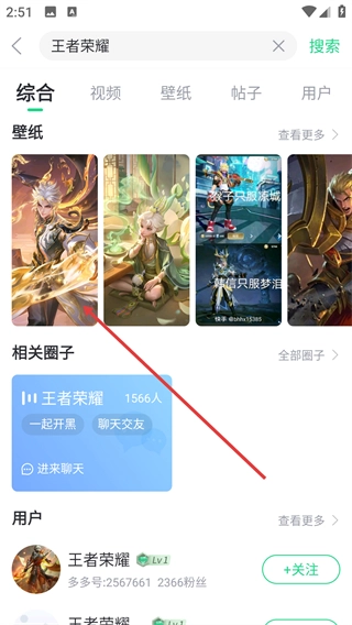 在搜索结果里找到你想要的壁纸图片并点击它,就能进入该壁纸的详情页面。