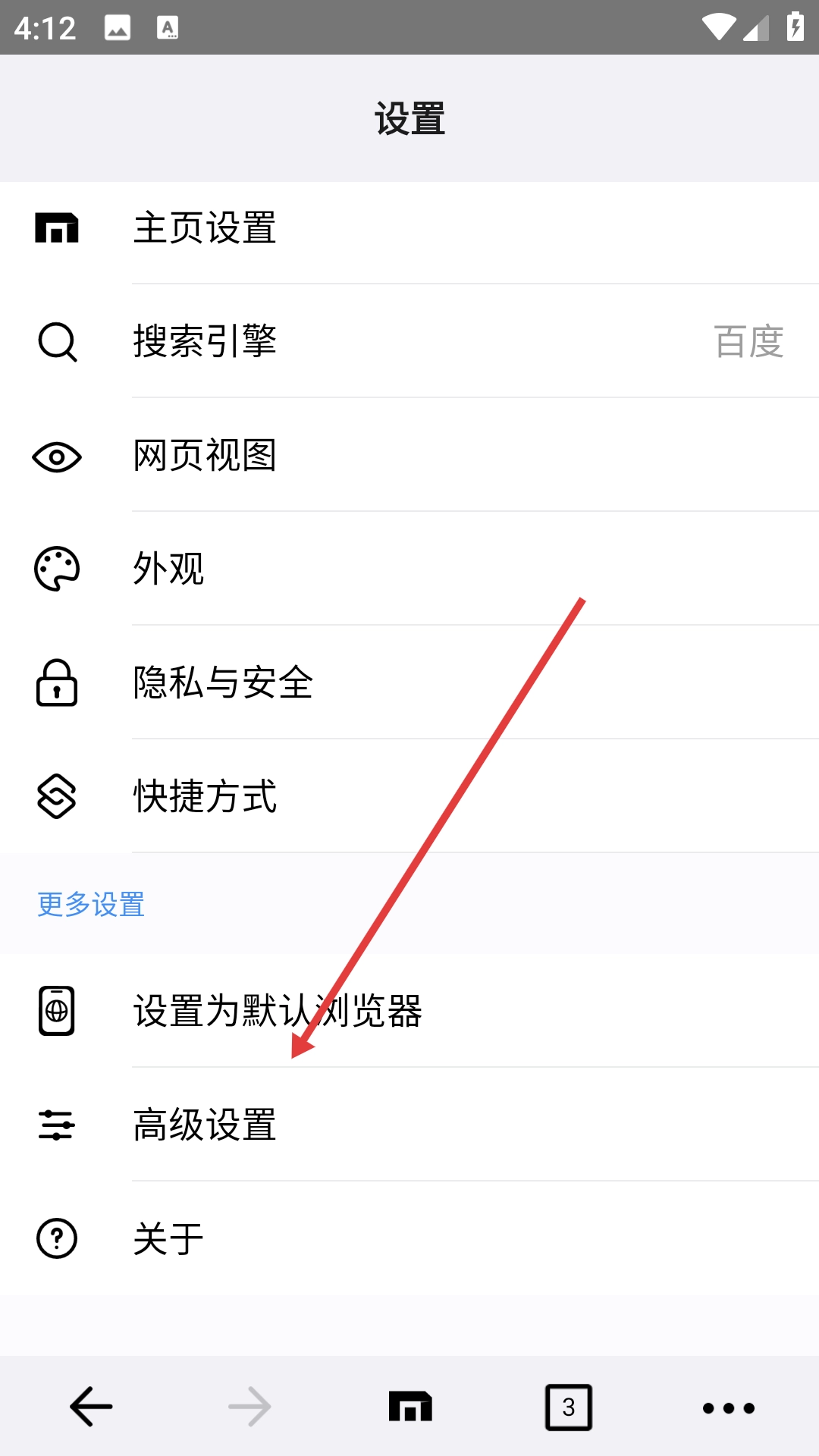 在设置页面中找到并点击【高级设置】选项,即可进入高级设置页面。