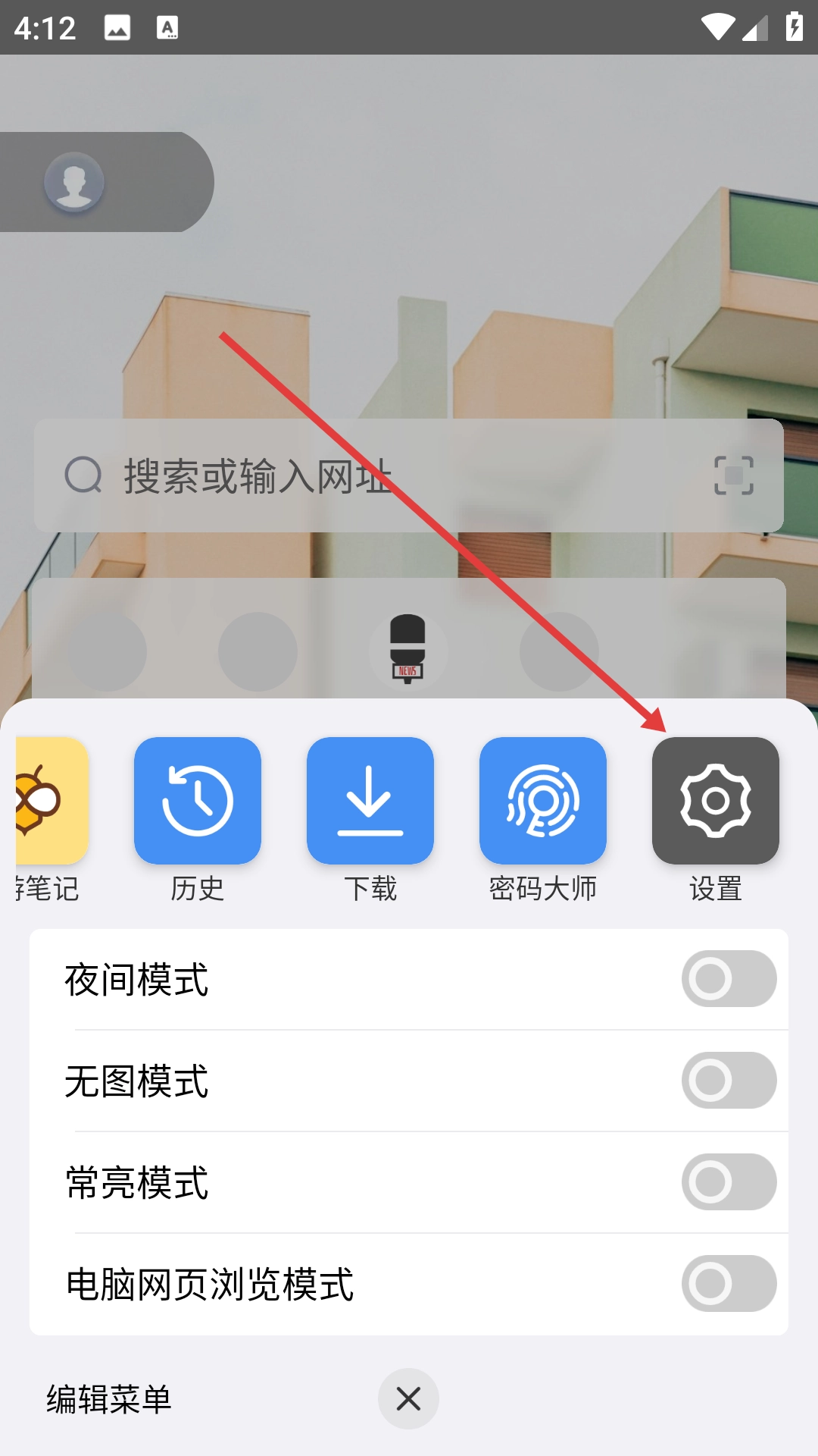 点击浏览器功能菜单里的【设置】选项,即可进入设置页面。