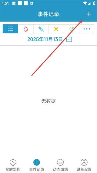 在事件记录页面,点击右上角的【+】按钮,即可进入添加事件的页面。