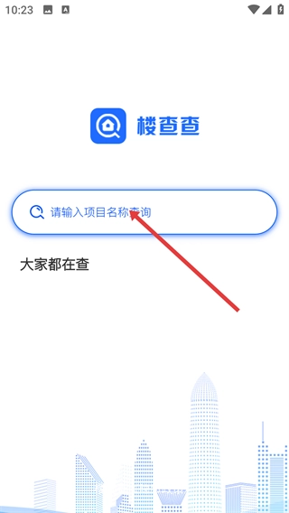 进入【楼查查】的主界面后,找到并点击显示“请输入项目名称查询”的搜索框,为输入要查询的项目名称做好准备。