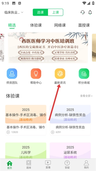 进入【最新资讯】页面后,点击【考试题库】标签,就能查看与题库相关的资讯内容。