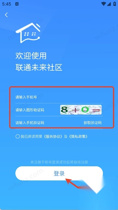 填写相关信息后点击登录按钮即可完成操作(若使用未注册的手机号登录,成功后系统将自动完成注册流程)