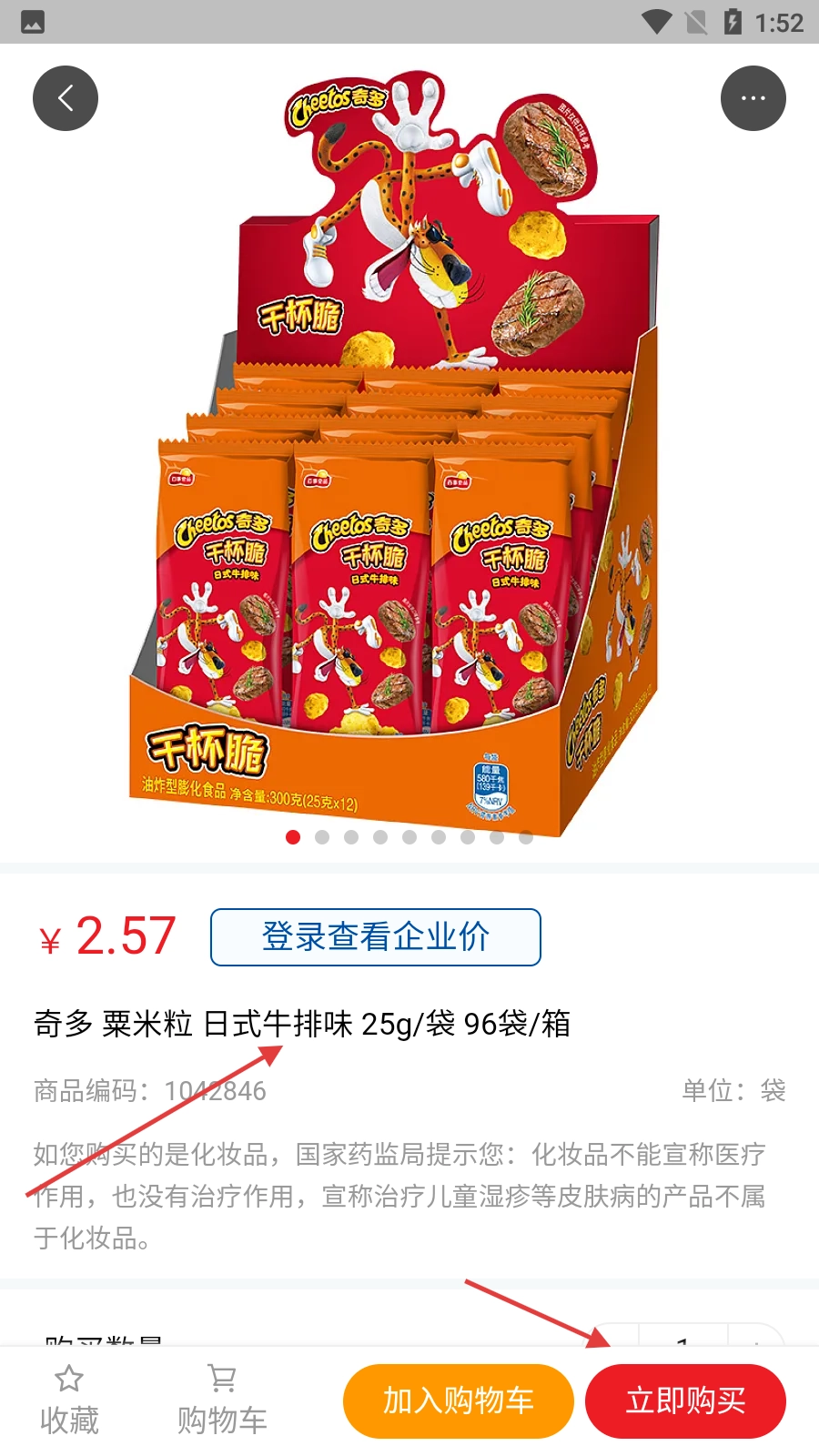 4、进入商品详情页面后,浏览商品相关信息,可点击【加入购物车】或【立即购买】按钮,以完成采购流程。