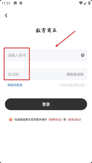 3、在账号登录页面的账号输入框里填写账号,在验证码输入框中填写验证码。