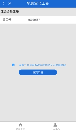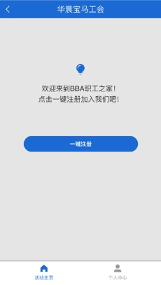未加入工会的同事第一次打开工会应用时,会看到注册页面,点击“一键注册”按钮就能完成注册。