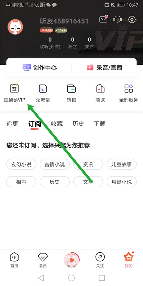 ③每天坚持签到就行啦,连续签到满七天就能得到1天的会员体验(就是下图里绿色箭头指的那个)