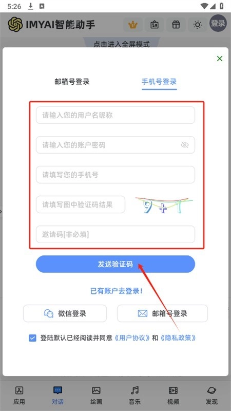 你只需依次填写手机号、用户名与密码等注册所需信息,接着点击“发送验证码”按钮,待获取验证码后将其准确输入,就能顺利完成注册并同步登录系统。