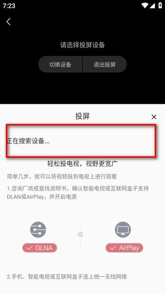 接下来系统会自动搜索设备,需要注意的是,只有当手机和电视连接在同一个WiFi网络下时,才能成功搜索到设备。
