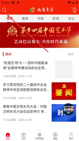 1、在应用首页点击左上角的搜索按钮,即可进入搜索输入界面,为输入关键词做好准备。