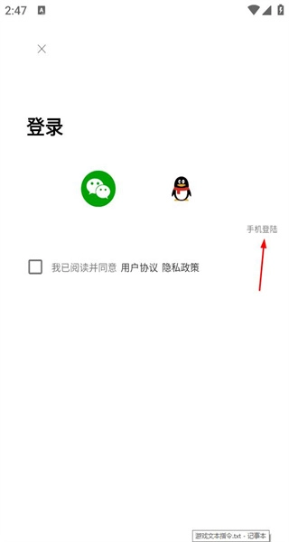 3、完成操作后进入登录页面,能看到微信、企鹅及登录选项,选择登录,进入对应的账号填写界面。