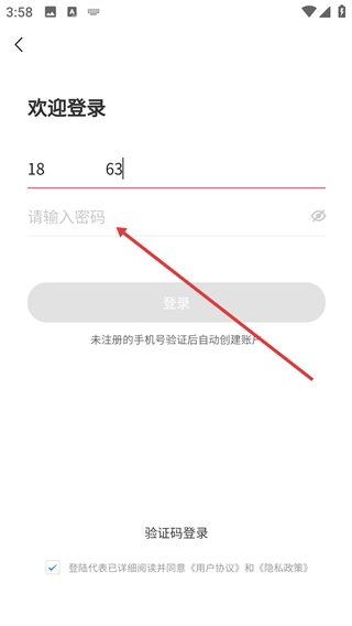 2、在密码登录界面的对应输入框中,填写目标号码,完成账号信息的基础录入。