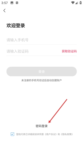 1、在登录界面点击【密码登录】选项,即可切换到密码登录的信息填写模式。