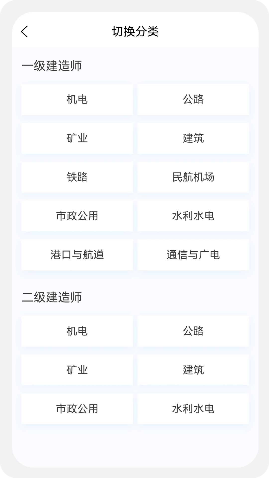 一级二级建造师新题库是一款汇聚海量题库资源的建造师考试必备软件,涵盖一级与二级建造师考试的各类题目,丰富优质的习题可供考生刷题备考。软件支持分类切换功能,方便用户针对性学习所需知识;已完成的题库练习进度及答题正确率可实时查看,助力考生掌握学习情况。此外,在试卷列表中能快速挑选试卷,随时开启做题模式。