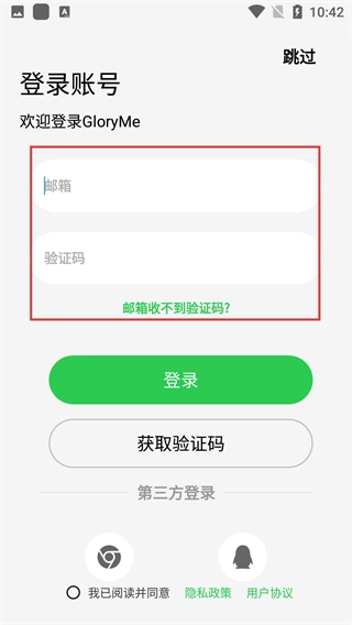 4、登录页面支持邮箱验证登录方式,操作流程为:先填写【邮箱】,点击【获取验证码】并输入收到的验证码,最后勾选相关协议,即可完成登录。