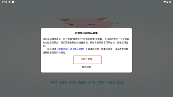 1、仔细阅读【服务协议和隐私政策】的内容,确认无误后点击【同意并继续】按钮,即可进入下一步操作流程。