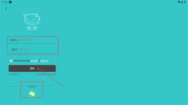 2、进入登录界面后,填写【账号】【密码】,勾选相关协议,再点击【登录】按钮,进行登录尝试。
