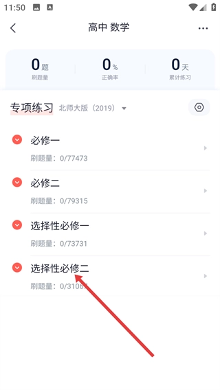 3、进入【高中数学】题库页面,选择【选择性必修二】专项练习选项,进入该模块的题目练习界面。