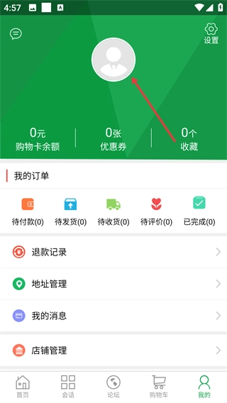 在同城配送类应用的首页,点击底部的【我的】选项,就能进入个人中心界面,在这里可以查看订单、地址等功能。