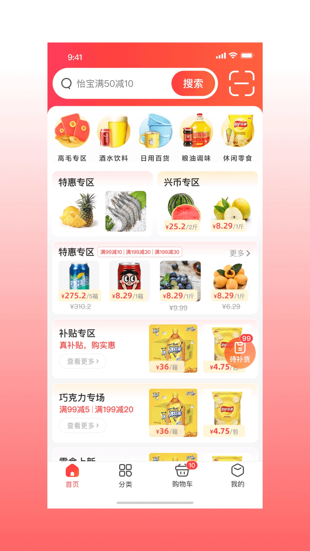 1、软件内的商品资源设有详细分类,涵盖水乳饮品、家居百货、办公文体等类别。