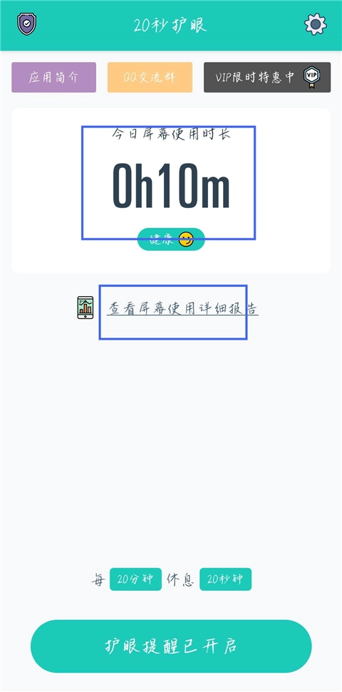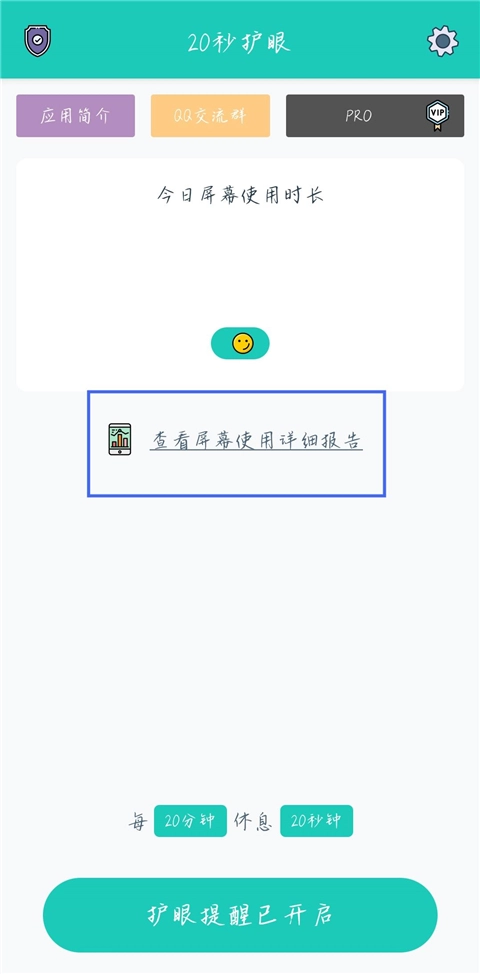 1、进入20秒护眼主页面后,点击【查看屏幕使用详细报告】选项。