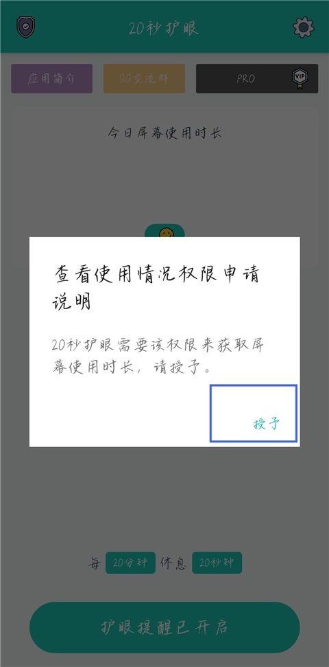 软件建议运用20-20-20法则来从根源上呵护你的眼睛,具体是每用眼20分钟,就休息20秒,休息期间要远眺20米以外的区域。