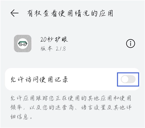 3、在权限设置中,打开允许访问使用记录的开关。