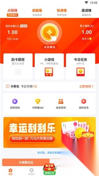 3、邀请好友领取现金:邀请好友捡光,好友刷一刷,现金奖励不限,新一天可提现。