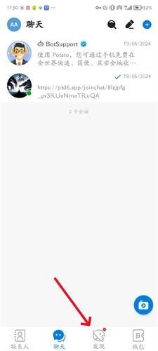 1、打开potato进入首页,点击底栏的“发现”选项。