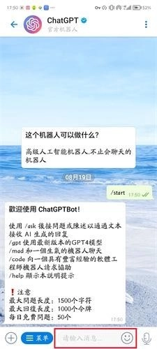4、进入聊天版块后,点击下方的开始,然后在文本框中输入问题就行了。