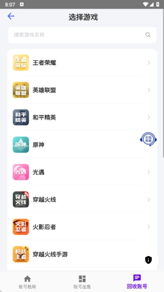 3、账号出售页面提供了多种不同的选项,你可以随时选择想租用的进入。