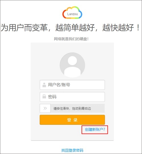 1、已注册账号的用户可直接打开蓝奏云完成账号登录操作;若尚未注册账号,则需通过电脑端访问蓝奏云平台,点击“创建新账户”按钮进行注册。