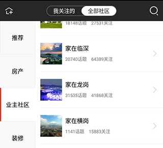 拥有新房、二手房、业主、临深、装修、亲子、教育、美食、香港、旅游、运动、时尚、购物、公益等各类内容,涵盖超3500个社区与1500个主题圈子。