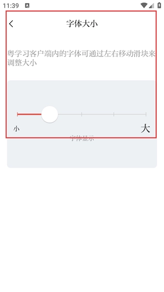 4. 进入字体大小调整页面后,拖动滑块左右移动,就能调节粤学习客户端里的字体显示尺寸。