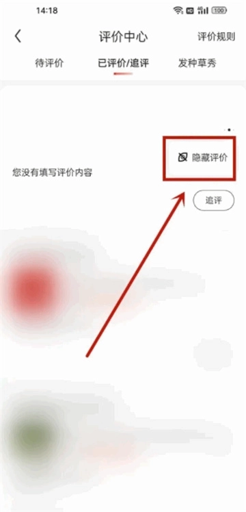 3、进入新页面后,点击隐藏评价;