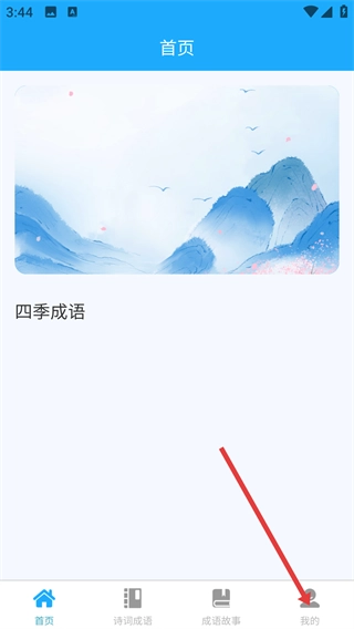 在软件的【首页】界面,能看到【四季成语】板块,底部设有【首页】【诗词成语】【成语故事】和【我的】这些入口,点击相应入口就能切换页面。